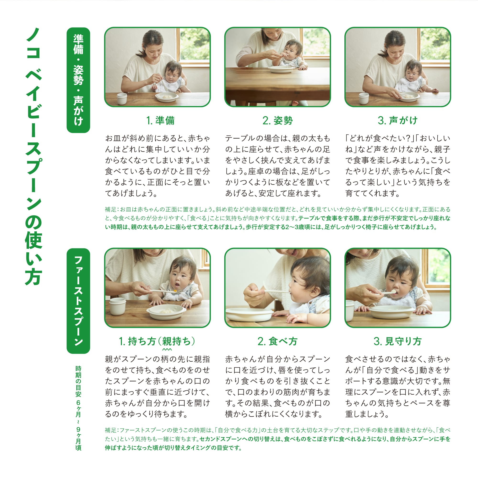 成長に合わせて使い分けられる3本のスプーンが、赤ちゃんの発達段階に寄り添い、はじめてのひと口から「じぶんで食べる」までをやさしくサポートします。